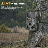【IP66 ضد آب و زاویه باز 120 درجه】 بدنه استتار شده و مقاوم در برابر آب با مهر و موم قوی است که به آن درجه ضد آب IP66 می دهد، بنابراین نیازی به نگرانی در مورد آب و هوای بد مانند باد و باران در شرایط مزرعه نیست. زمان طولانی استندبای تا 6 ماه در حالت خواب زمستانی است. این دوربین می تواند به صورت افقی با زاویه باز تا 120 درجه عکاسی کند.
