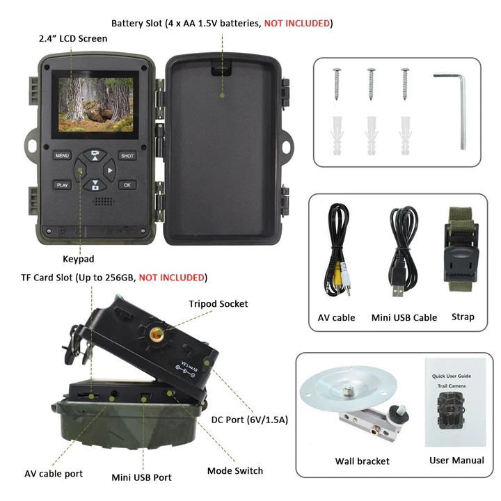 دوربین تله ای UncleHu یک دوربین بسیار بی نظیر برای نصب در باغ، ,ویلا، حیات منزل، مستندسازی از حیات وحش و ... است که با رنگ خاص و قابلیت استتار بالا، می تواند به خوبی در طبیعت مورد استفاده قرار بگیرد. این دوربین دارای دید در شب و حالت استندبای است. دوربین تله ای شکاری با 8 عدد باتری قلمی کار میکند و در صورت استفاده در حالت استندبای، می تواند تا 6 ماه باتری را نگه دارد و در صورت لزوم و نزدیک شدن حیوانات یا انسان به آن، شروع به عکسبرداری و فیلمبرداری کند. این دوربین بسیار بی همتا است و به ندرت در بازار ایران یافت می شود. از مزایای آن می تواند به قابلیت نصب کارت حافظه جانبی 256 گیگابایت و عدم نیاز به برق اشاره کرد. لنز این دوربین 20 مگاپیکسل کیفیت داشته و با کیفیت 4K فیلمبرداری میکند. می توانید از این دوربین برای گرفتن تایم لپس هم استفاده کنید. این دوربین در شرایط مه نیز می تواند فیلمبرداری کند. این دوربین قابلیت دید در شب نیز دارد و به خوبی می تواند بدون جلب توجه انسان و حیوان، در شب از آن ها فیلم و عکس بگیرد.