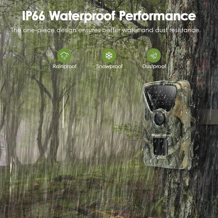 لنز دوربین: 1520P 28MP. Trail Cam یک ویدیو با کیفیت HD با وضوح 2.7k ارائه می دهد، زمان را می توان روی 3-60 ثانیه و 2-10 دقیقه تنظیم کرد.