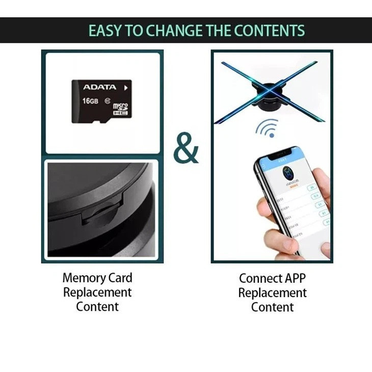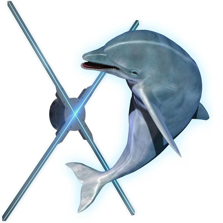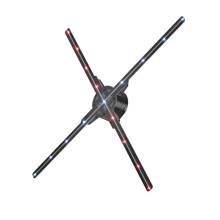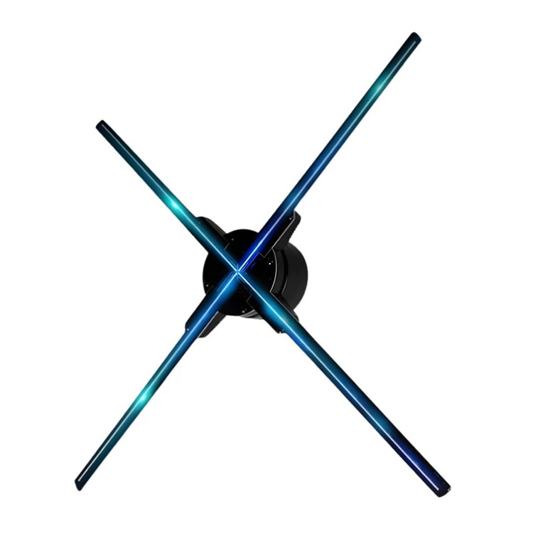 فن هولوگرام سه بعدی (3D) یک نوع پروژکتور یا نمایشگر جدید است که می تواند تصاویر و ویدیوهای شما را از طریق اپلیکیشن یا مموری به صورت سه بعدی پخش کند. فن هولوگرام سه بعدی یک محصول منحصر به فرد است و کاربردهای بسیار گسترده ای از جمله برای تبلیغات، عرضه محصولات، تبلیغات فروشگاهی و مجازی، معرفی محصول و .... دارد. این نمایشگر از فناوری هولوگرافیک برای ارائه تصویر بهره می برد و با وزن و اندازه سبک و جمع و جوری که دارد می تواند به راحتی همه جا مورد استفاده قرار بگیرد. همچنین قابل نصب روی دیوار است و حتی میتواند با قرار گرفتن در کنار تعداد زیادی از فن های دیگر، تصویر سه بعدی واحدی را ارائه کند. نمایشگر سه بعدی فن هولوگرافی مدل HD-F52 جدیدترین و جذاب ترین نمایشگر تبلیغات هولوگرافیک سه بعدی معلق در هوا برای مرکز خرید،فروشگاههای لباس، رستوران، موزه، فروشگاه جواهرات و… میباشد.این دستگاه با استفاده از یک ماژول متحرک ال ای دی باعث ایجاد تصاویر سه بعدی میشود.تصاویر هولوگرافیک که به وسیله چرخش ایجاد میشود باعث جلب توجه افراد میشود.هولوگرام فن می تواند تصاویر رنگی و متحرک را به صورت سه بعدی معلق در هوا در اندازه 52 سانتی متر نمایش دهد. سیستم هولوگرافیک پروجکشن (Holographic Projection) تصویری تمام رنگی با رزولوشن بالا و بدون محدویت مکانی به صورت سه بعدی ارائه می دهد. بینندگان می توانند یک شئ و یا شخص واقعی را روی صحنه ببینند در حالی که با تصویر شئ و شخص مجازی در تعامل هستند. این تصاویر در چشم انسان در فضا با عمق و پرسپکتیو و به صورت معلق دیده می شوند و تجربه ای به شدت نزدیک به واقعیت را در ذهن مخاطب ایجاد می کند. یکی از نکات مهم هولوگرافیک پروجکشن عدم نیاز به استفاده از عینک های مخصوص است و بیننده می تواند به طور مستقیم و بدون واسطه با تصویر مورد نظر ارتباط برقرار کند.پخش تصاویر هولوگرافیک می تواند روی یک صحنه (با تجهیزات خاص) و یا توسط یک پروجکتور روی یک صفحه شفاف و نامرئی ارائه شوند. در این پروژکتور از چراغ های LED استفاده شده و بسته به تعداد LED، سرعت چرخش و وات دستگاه، کیفیت تصویر نیز تغییر می کند. این دستگاه از فرمت های تصویری MP4، AVI، RMVB و JPG پشتیبانی می کند. دستگاه دارای ریموت است و به راحتی می توانید آن را کنترل کنید.