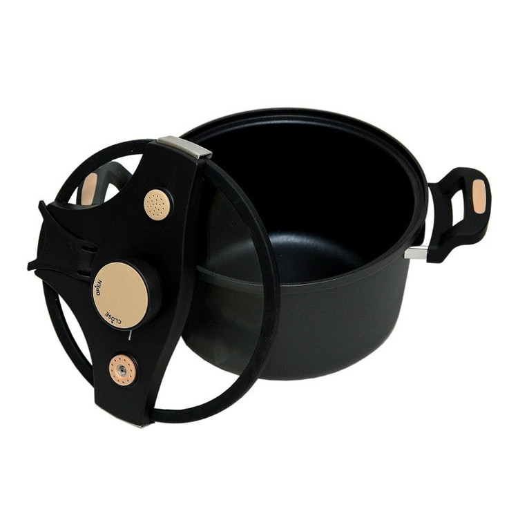 قابلمه نچسب، تمیز کردن آسان، ایمن، پخت سریع، آسیب تغذیه ای کمتر، قابل باز شدن تا نیمه ، اشیاء قابل استفاده: اجاق گاز، اجاق القایی و سایر ابزارهای عمومی: قاشق های چوبی، سیلیکونی و نایلونی