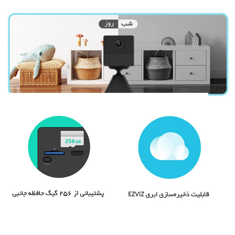 ویدیوهای ضبط شده خود را روی کارت microSD محلی تا 256 گیگابایت ایمن کنید، یا برای ذخیره سازی ابری کاملاً رمزگذاری شده و آرامش خاطر بیشتر، در CloudPlay EZVIZ مشترک شوید.