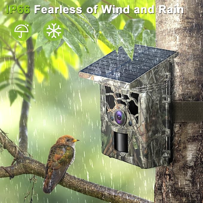 حافظه پشتیبانی شده بزرگتر و ضد آب IP66: دوربین حیات وحش خورشیدی از کارت حافظه میکرو تا 256 گیگابایت پشتیبانی می کند، بنابراین می توانید عکس ها و فیلم های بیشتری بگیرید. سطح ضد آب IP66 با مواد سخت و کار سخت، از اجزای داخلی در برابر آب و هوای بد محافظت می کند، به طور گسترده در محیط های مختلف استفاده می شود.