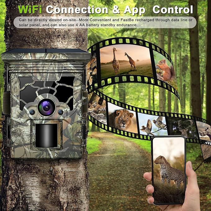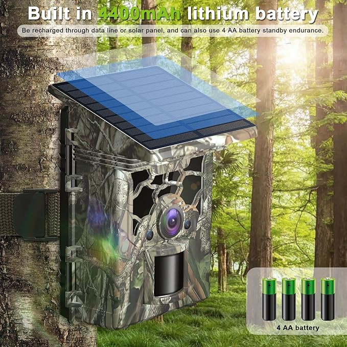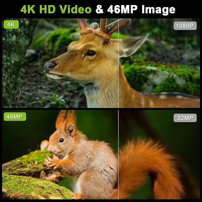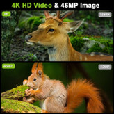 ویدیوی 4K/30 فریم در ثانیه Ultra HD و عکس 46 مگاپیکسلی: لنز اپتیکال با کیفیت بالا، حسگر تصویر پیشرفته، الایدیهای 850 نانومتری کم درخشش، ضبط ویدیو تا 2160×3840 با سرعت 30 فریم در ثانیه در دسترس است. فرمت ویدئو MP4 است، دوربین دنباله خورشیدی لحظات شگفت انگیز حیات وحش را ثبت می کند، شما حرکات نرم تری از تمام حیات وحش ثبت شده را احساس خواهید کرد.
