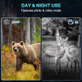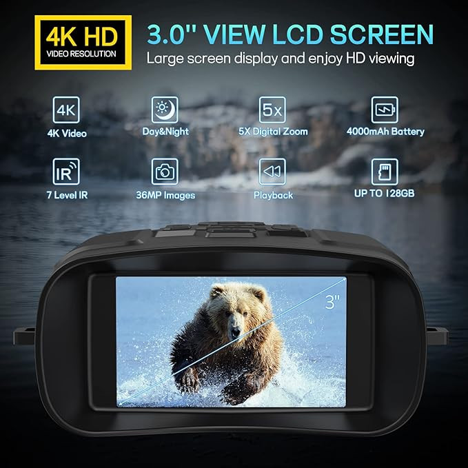 وضوح 4K HD و تصویر 36 مگاپیکسل: دستگاه دید در شب یک صفحه نمایش 3.0 اینچی TFT LCD با وضوح بالا، وضوح 4K (4096 x 2160) HD و زوم دیجیتال 5 برابر، لنز 25 میلی متری کاملاً چند لایه است. این دوربین دوچشمی دیجیتال دید در شب می تواند تجربه بصری فوق العاده ای را برای شما فراهم کند، چه در روز و چه در شب، به راحتی می توانید لحظات فوق العاده ای را ثبت کنید.