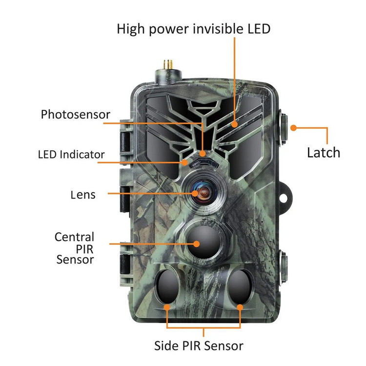 دوربین تله شکاری برند سانتیک (Suntek HC-810 Plus) دارای حسگر مادون قرمز بوده، سیم کارت خور (از فورجی 4g پشتیبانی می کند) و دارای جایگاه رم(256 گیگ حافظه داخلی) می باشد.