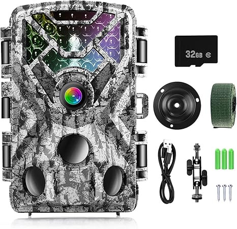 【رزولوشن بالا و کیفیت تصویر بالا】این دوربین از سرعت ماشه فوق سریع 0.2 ثانیه پشتیبانی می کند، مجهز به تصاویر ویدئویی 32 مگاپیکسلی 4K Full HD، عملکرد تصویر و فیلم روشن و رنگارنگ است و عملکرد دید در شب عالی است. مجهز به 42 چراغ LED مادون قرمز برای تصاویر واضح حتی در محیط های تاریک. صفحه نمایش رنگی LCD 2.4 اینچی برای نمایش راحت تر.