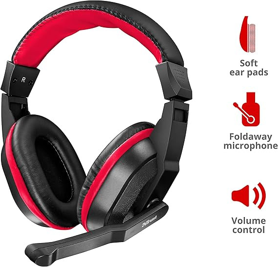 اجزای همراه هدست بازی Trust Ziva On-Ear با میکروفون جمعشونده، مشکی/قرمز