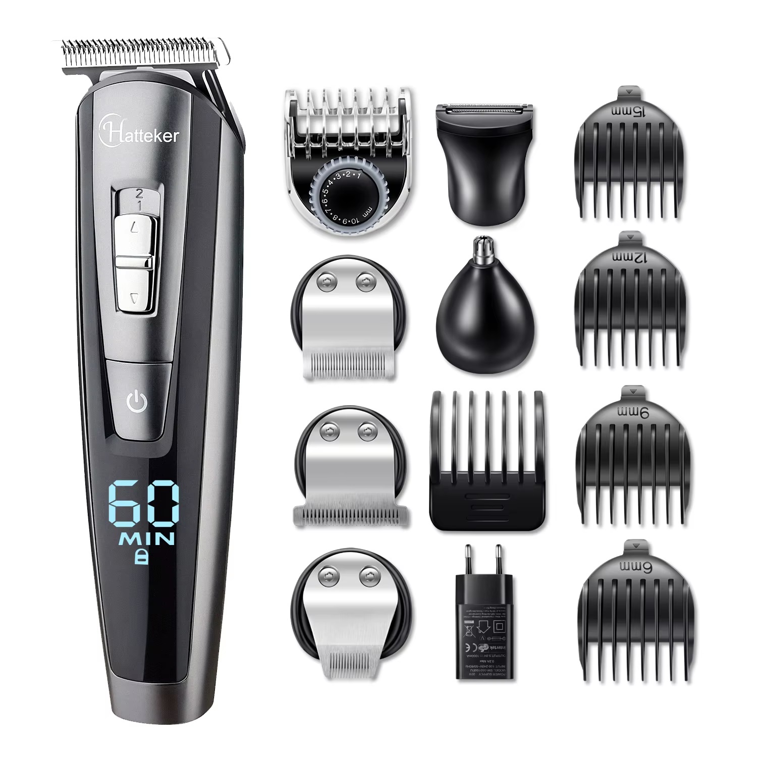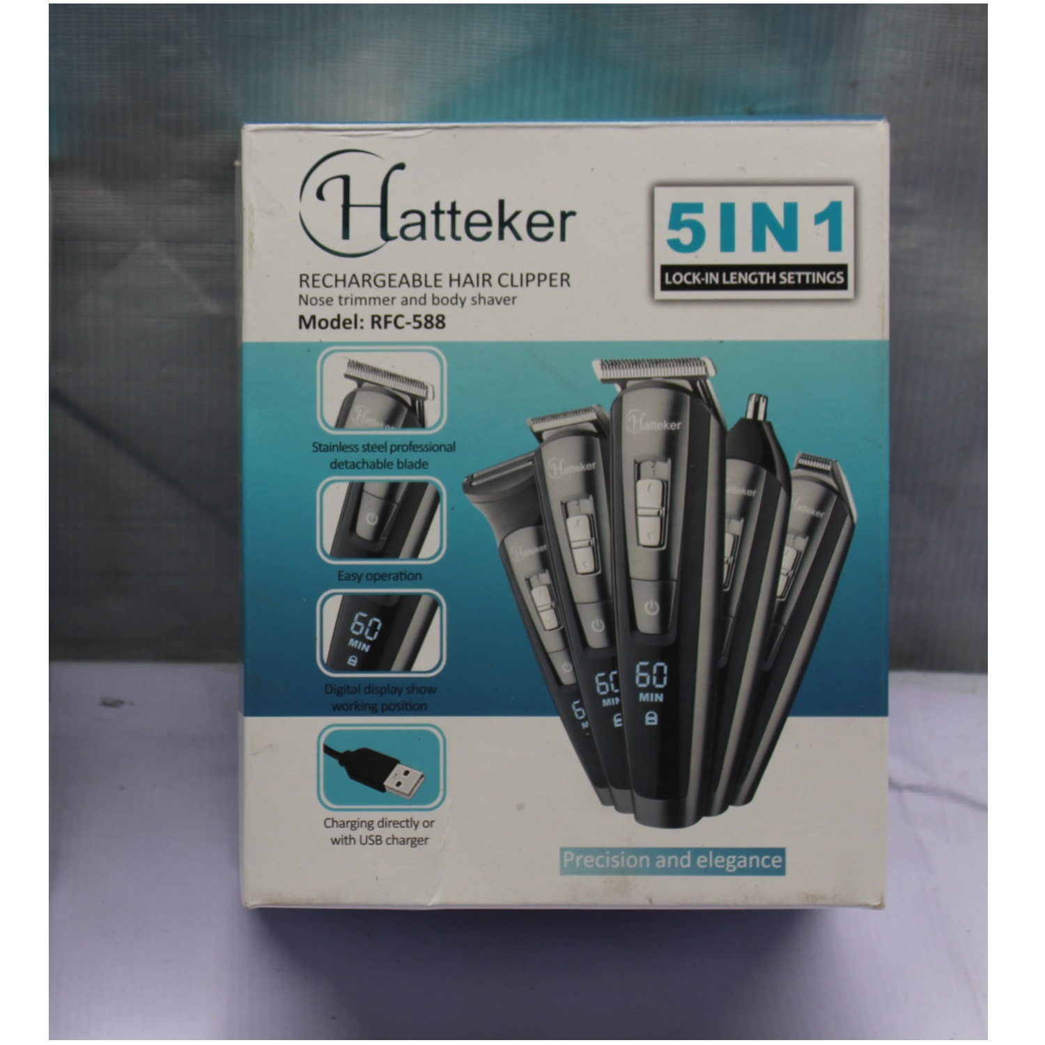 ست ماشین اصلاح سر و صورت و بدن هاتکر مدل RFC-588 یک ست کامل و باکیفیت و کاربردی است که همه نیازهای شما را در یک پک پوشش می دهد. این ست شامل سری حجم زن، دو عدد خط زن، سری گوش و بینی و سری اصلاح فویلی بدن است که در کنار آن از 6 عدد شانه اصلاح، یک عدد شانه کوچک برایش موی سر و ریش و ... بهره مند خواهید شد. این ماشین اصلاح دارای استند شارژ نیز هست و همزمان میتوان خود دستگاه و کل سری های دستگاه را به همراه شانه ها بر روی آن قرار داد. یک عدد روغن مخصوص و برس تمیزکاری نیز در بسته بندی وجود دارد. همچنین یک کاور نرم برای حمل دستگاه و استفاده در خارج از منزل نیز در بسته بندی قرار دارد. این ماشین اصلاح دارای وزن مناسب است که دست را در استفاده طولانی مدت خسته نمیکند. همچنین تعویض سری ها به راحتی انجام می شود و به راحتی می توانید در یک اصلاح چندین نقطه بدن را شیو و تریم کنید. ماشین اصلاح هاتکر با 90 دقیقه شارژ، حدود 60 دقیقه کار می کند و مدت طولانی می توانید از آن لذت ببرید. میزان شارژ دستگاه نیز به صورت دقیقه بر روی بدنه آن به صورت LED نمایش داده می شود. دستگاه دارای استاندارد ضدآب IPX7 بوده و در محیط های مرطوب مثل حمام می توانید به راحتی از آن استفاده کنید. تیغه های آن از استیل ضدزنگ ساخته شده است.